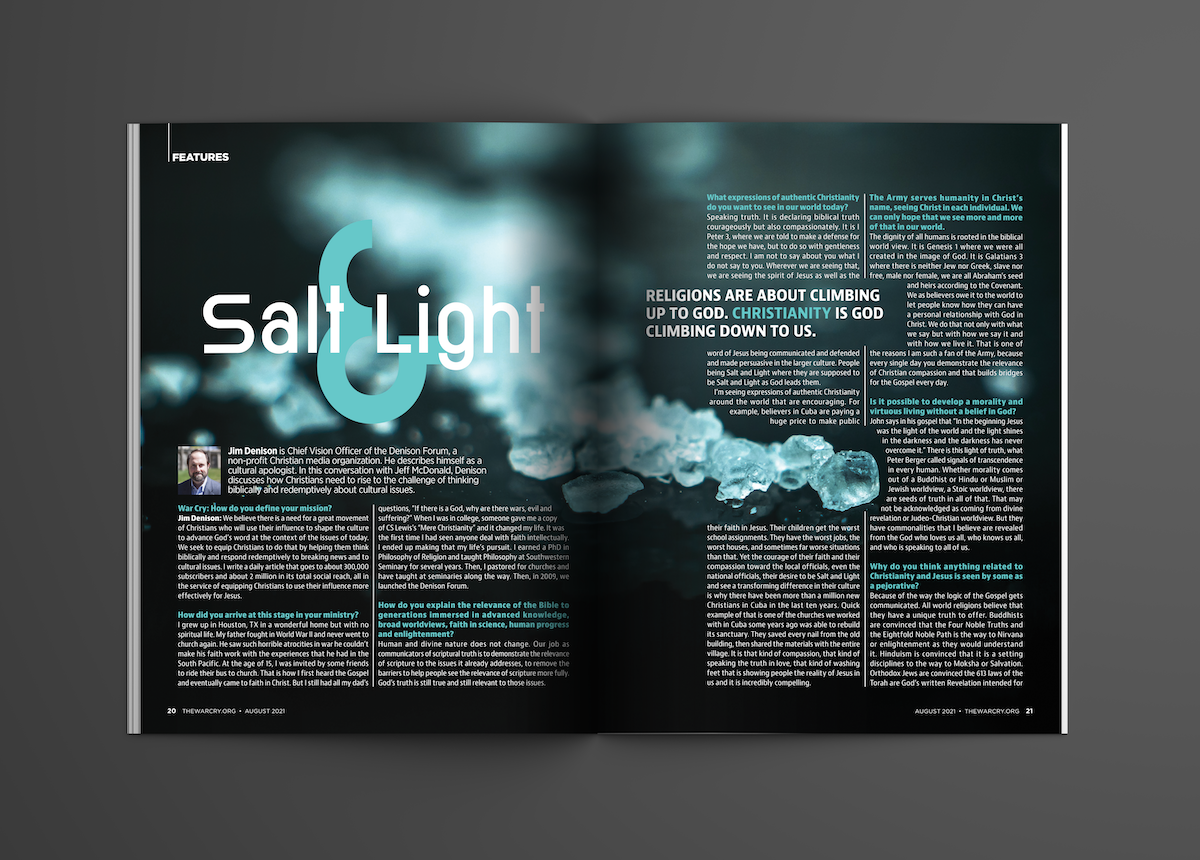 A three page feature for the August 2021 issue of The War Cry.