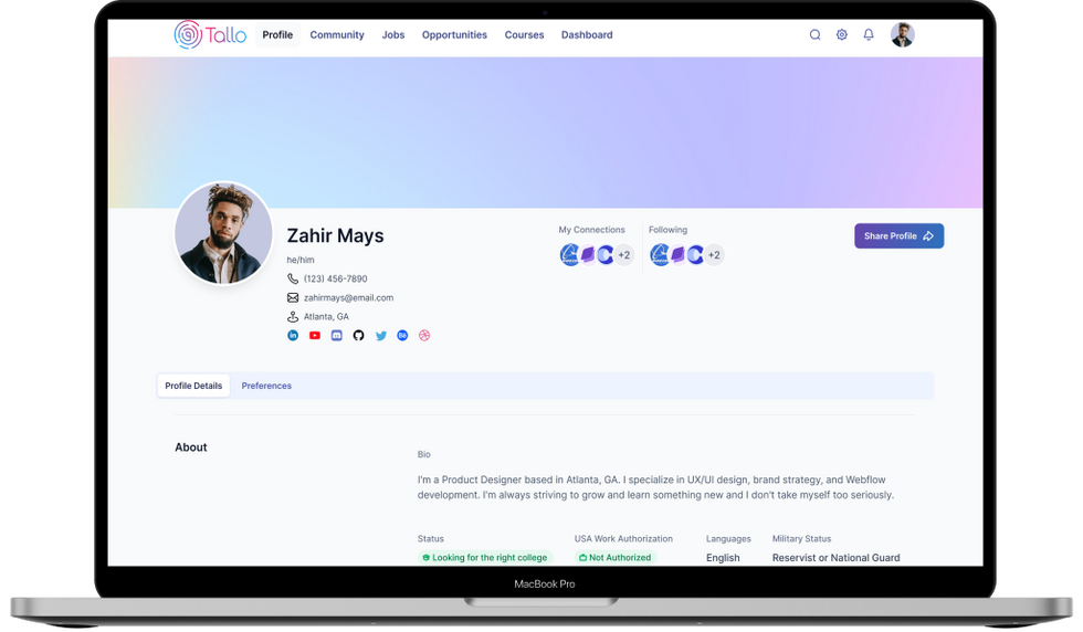 The new Tallo platform incorporated comprehensive user profiles that allowed students to showcase their skills and experiences, apply for jobs and scholarships, and participate in events. Enhanced search and filter features were implemented for Talent Seekers, supporting DEI initiatives by enabling targeted candidate searches. The platform also featured brand-building tools for organizations to present their culture and opportunities effectively. Analytics and tracking capabilities allowed Talent Seekers to measure engagement and optimize their recruitment efforts.