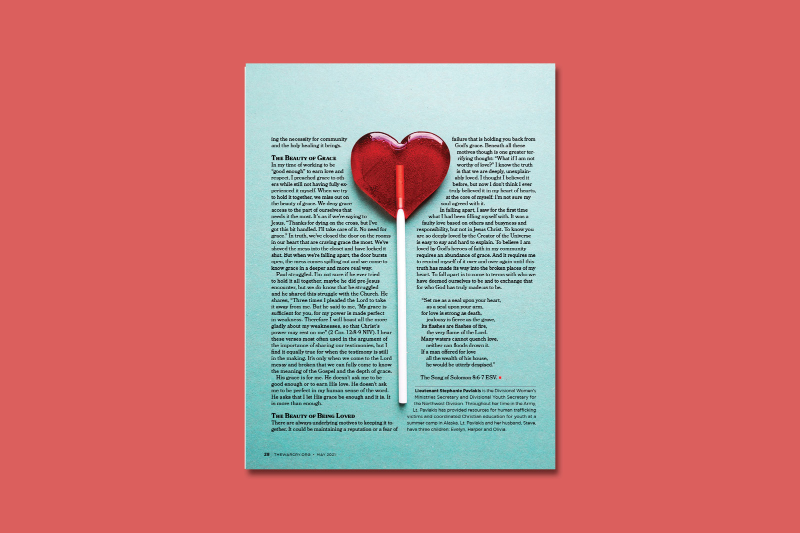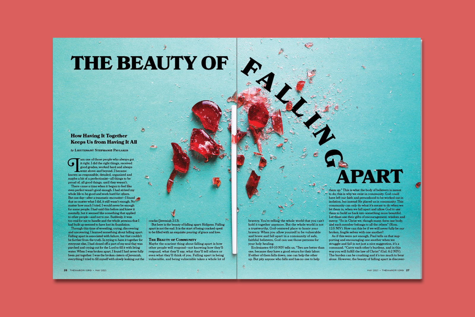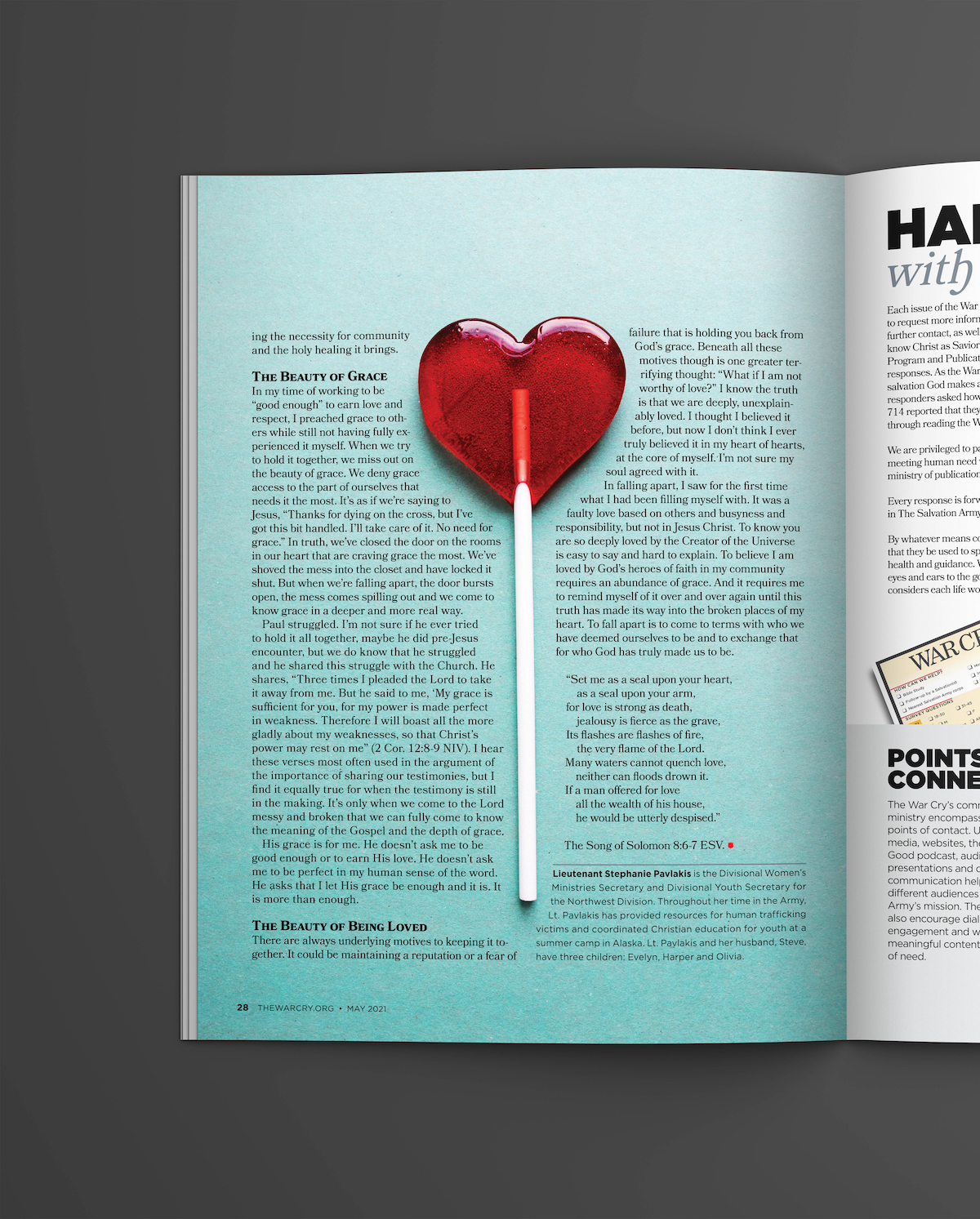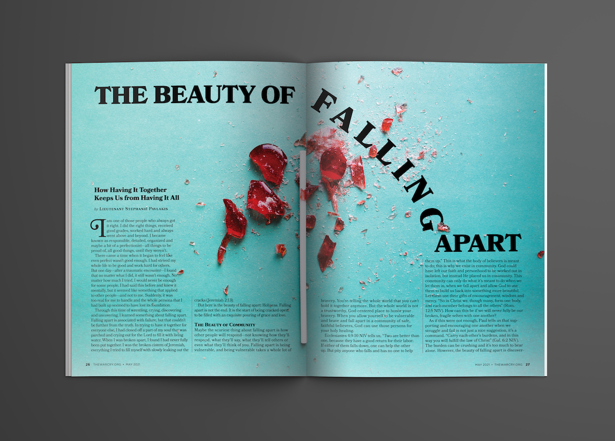 A three page feature layout for the May 2021 issue of The War Cry.