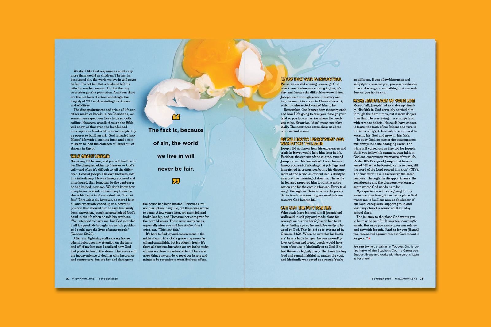 A four page feature layout for the October 2020 issue of The War Cry,